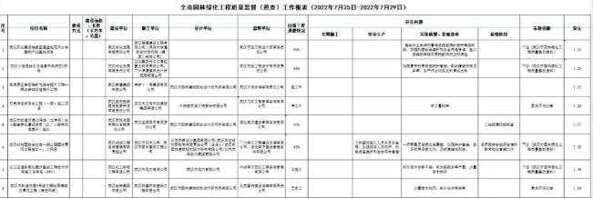 本周共下達(dá)《武漢市園林綠化工程質(zhì)量整改通知》4份,竣工驗收項目0個。
