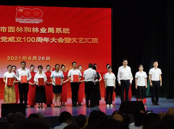 “風在吼,馬在叫,黃河在咆哮,黃河在咆哮……。”嘹亮的歌聲響徹在市財政學院報告廳,6月26日下午,建管站參加了市園林和林業(yè)系統(tǒng)慶祝中國共產(chǎn)黨成立100周年大會暨文藝匯演活動,在表彰大會上,建管站黨支部榮獲局系統(tǒng)先進基層黨組織稱號,我站余鋼同志榮獲局系統(tǒng)優(yōu)秀黨務工作者稱號,在文藝匯演中我站與市綠化服務中心、市森林防火監(jiān)測預警中心共同表演的大合唱《保衛(wèi)黃河》榮獲一等獎。